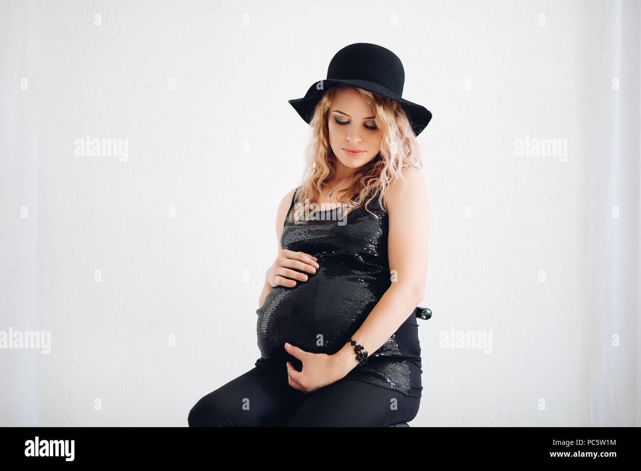 Studio Portrait De Femme Enceinte A La Mode Attrayant En Noir