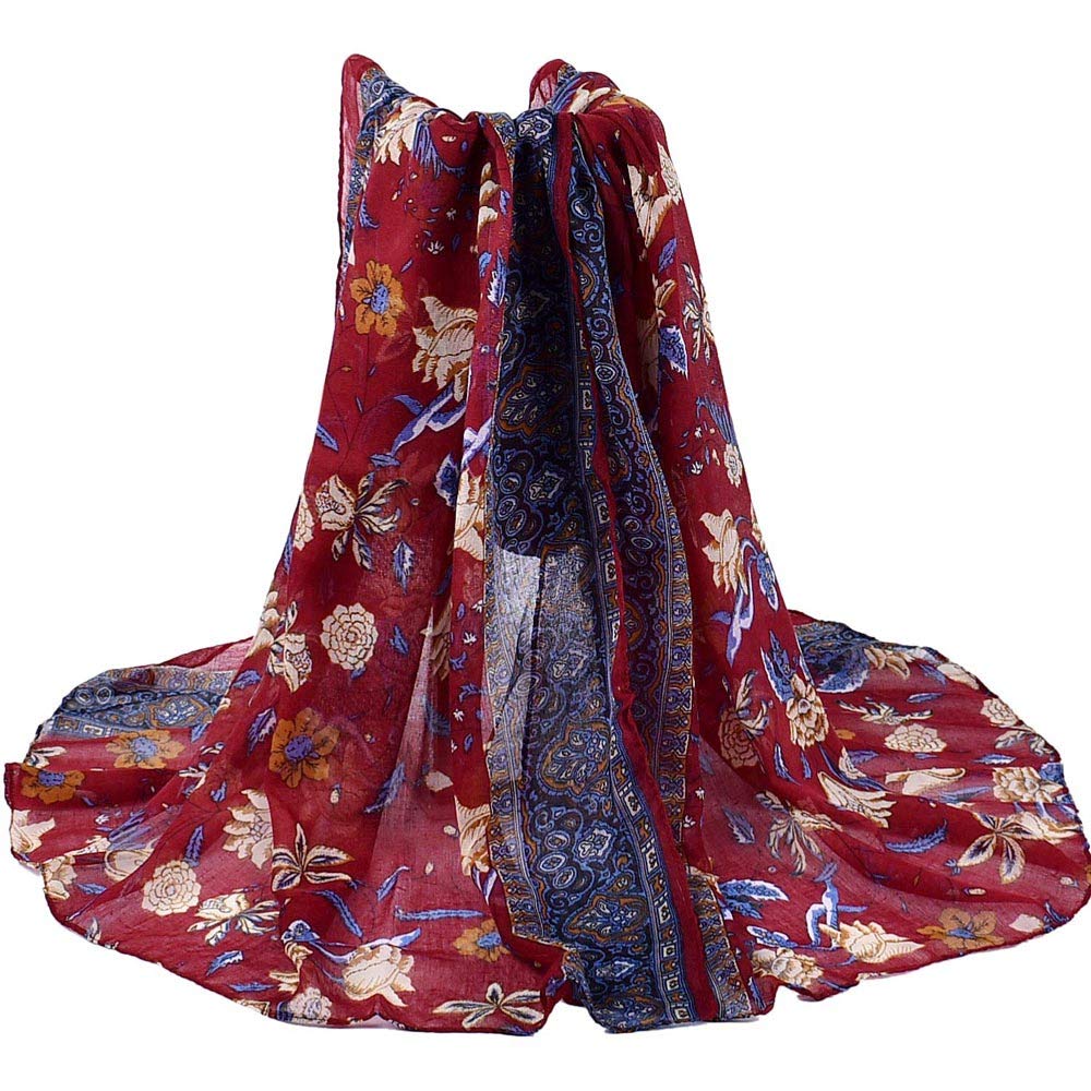 Keepwin Femme Mode Floral Print Chale Doux Echarpes Long Foulard