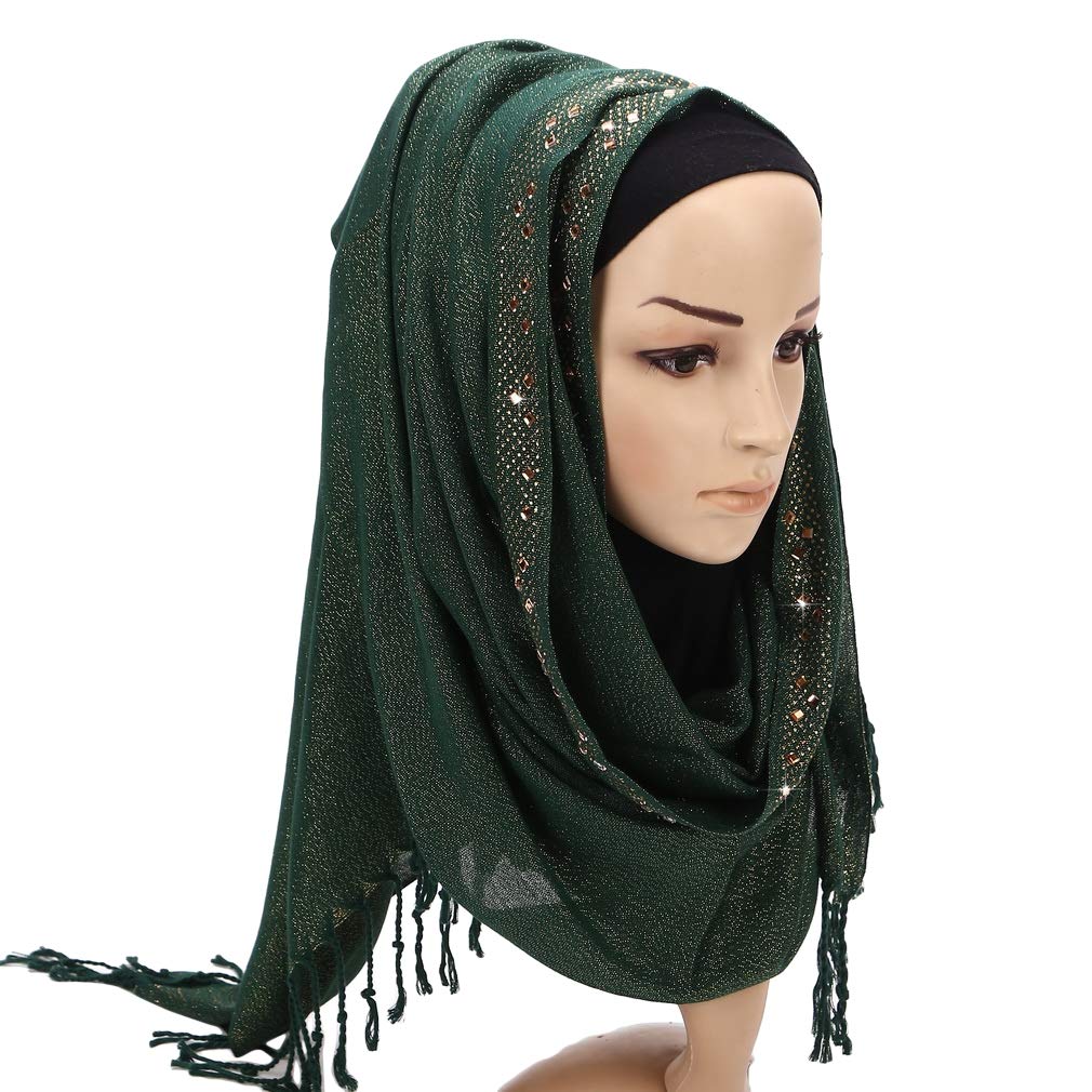 Comvip Echarpe Foulard Femme Ajouree Strass Coton Turban Musulman