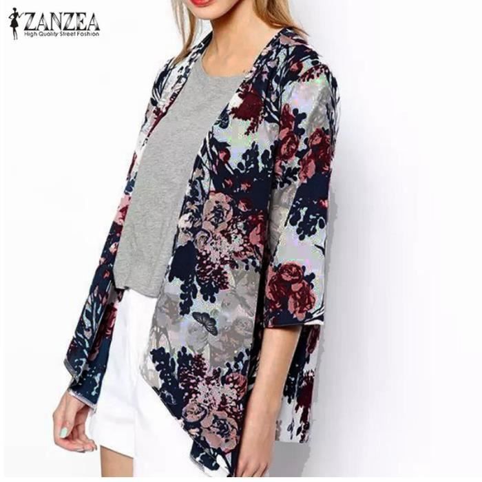 Zanzea Veste Kimono Manches 3 4 Mode Femme Fleur Imprimee Achat