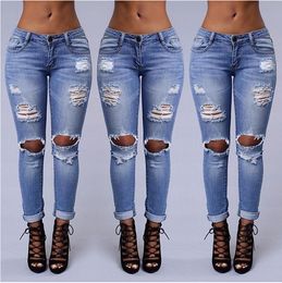Pop Dunne Bleistift Hosen Frauen 2019 Stretch Loch Zerrissene Jeans