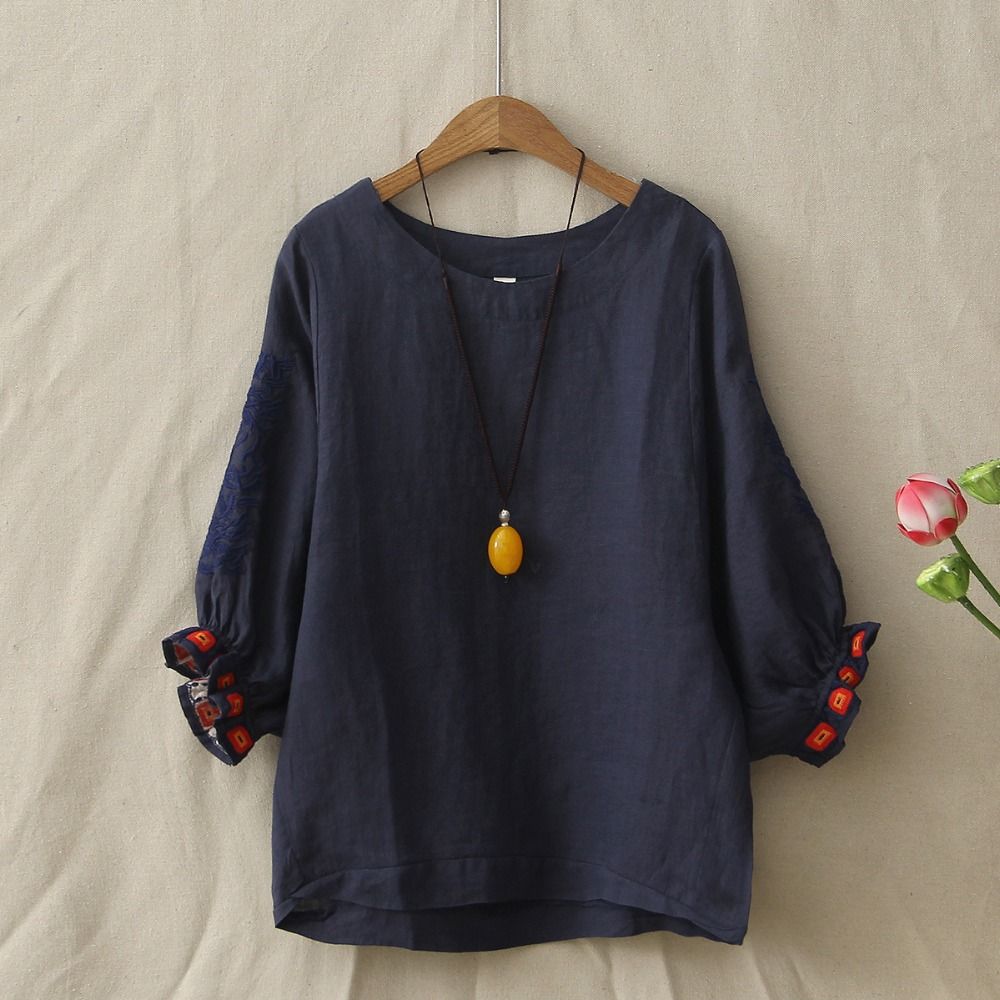 2019 Spring Summer Half Sleeve Top Haut Femmes Mode Vintage Shirt