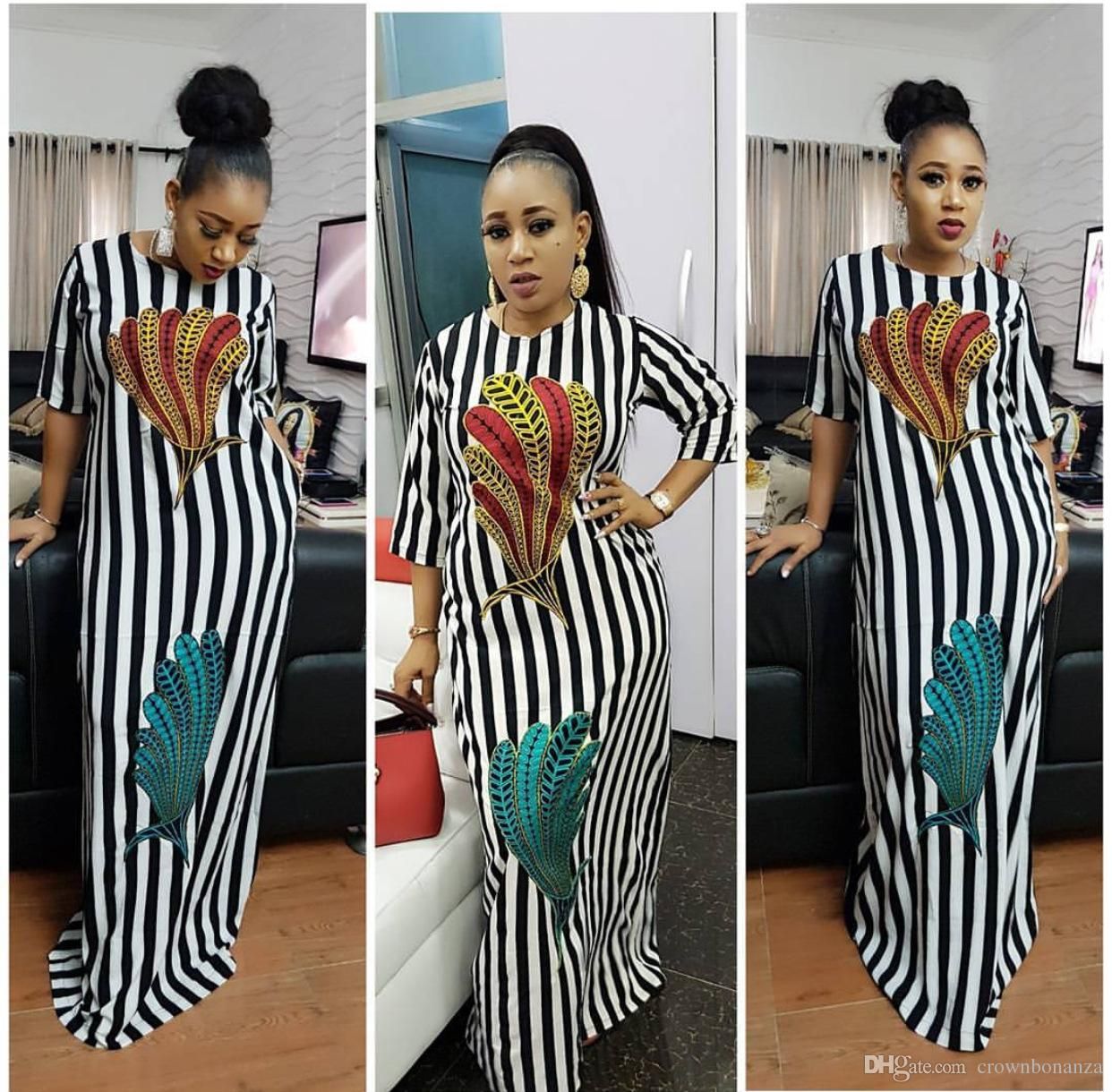 Acheter 2018 Mode Femmes Noir Et Blanc Rayures Robe Maxi Conception