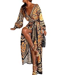 Vente Everkaki Femmes Boho Gypsy Imprimer Robes Gland V Neck Lace