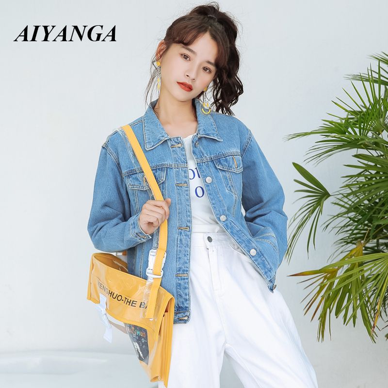 Acheter 2019 Printemps Automne Femmes Chic Trou Denim Vestes Col