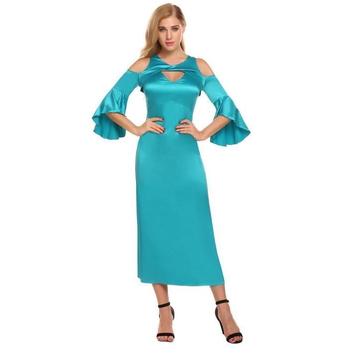 Robe Longue A Party A Manches Vert Decontractee Solide Sexy Mode