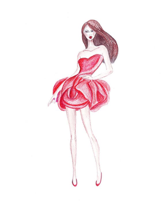 Mode Femme Dessin Mode Art Illustration Mode Dessin Crayons Etsy