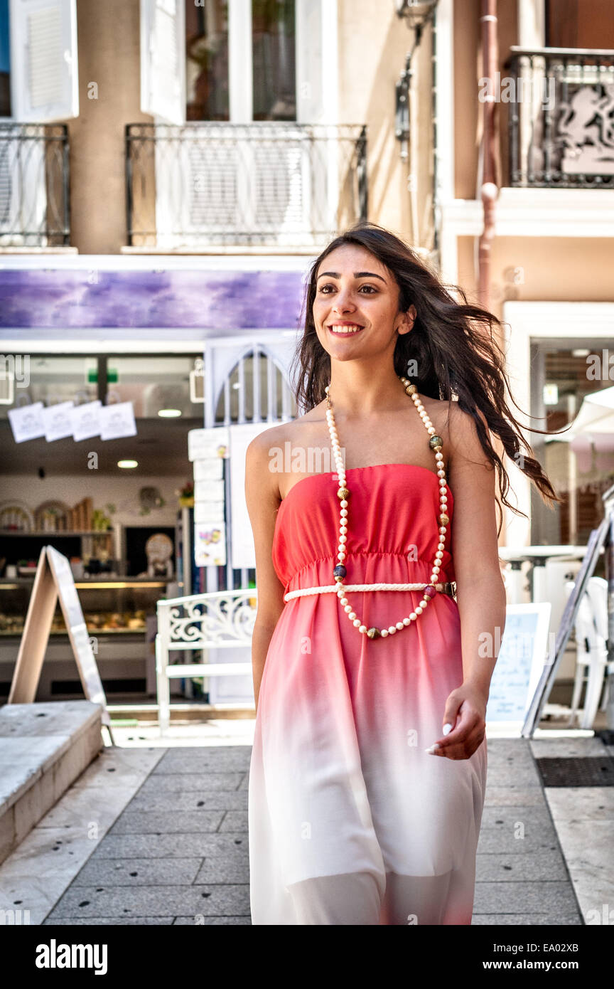 Jeune Femme A La Mode Flanant Dans Street Cagliari Sardaigne
