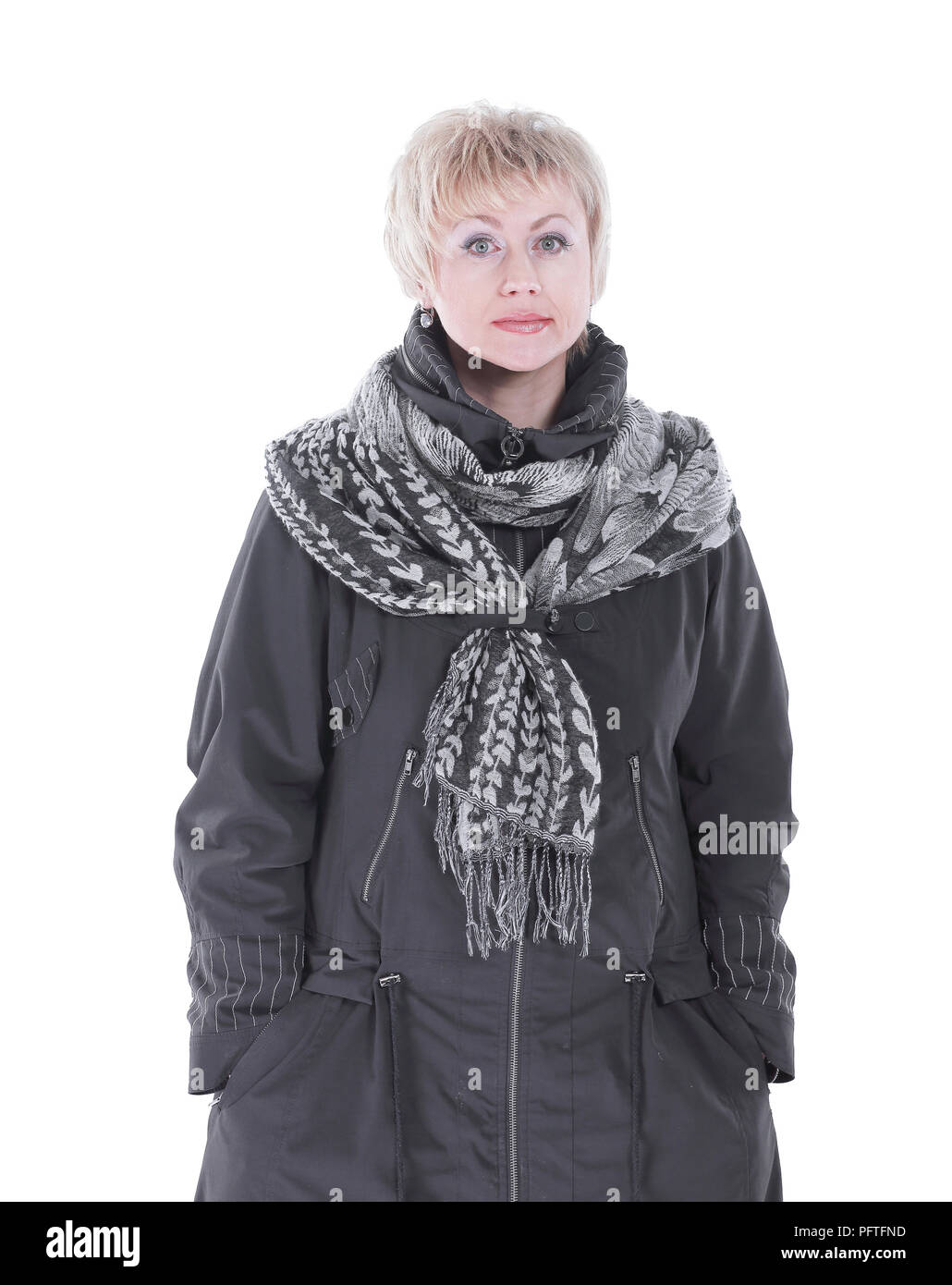 Mode Femme Dans Un Manteau Noir Et Echarpe Isole Sur Blanc Banque D