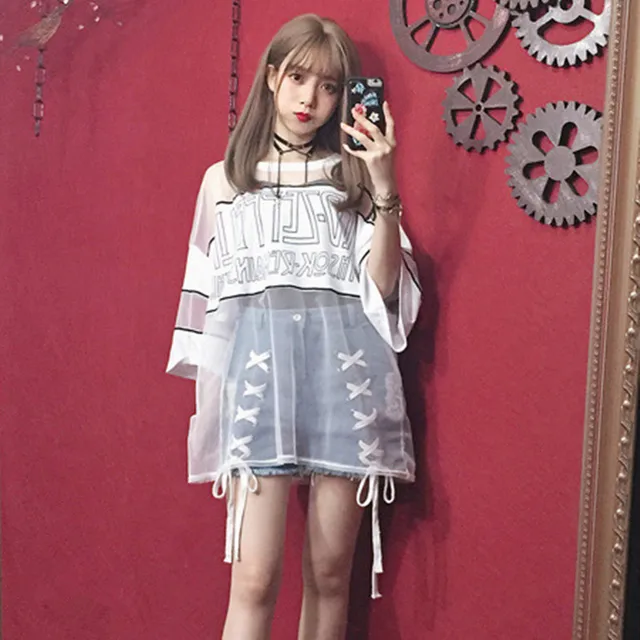 Ete Femme Bf Goth Filles Harajuku Punk Noir Hauts Transparents Style