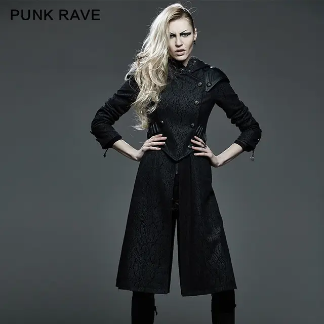 Punk Rave Femmes A Capuchon Manteau Gothique Steampunk Militaire