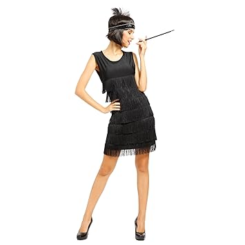 Womens Charleston Fringe Flapper Costume Fancy Dress 1920s 1930s