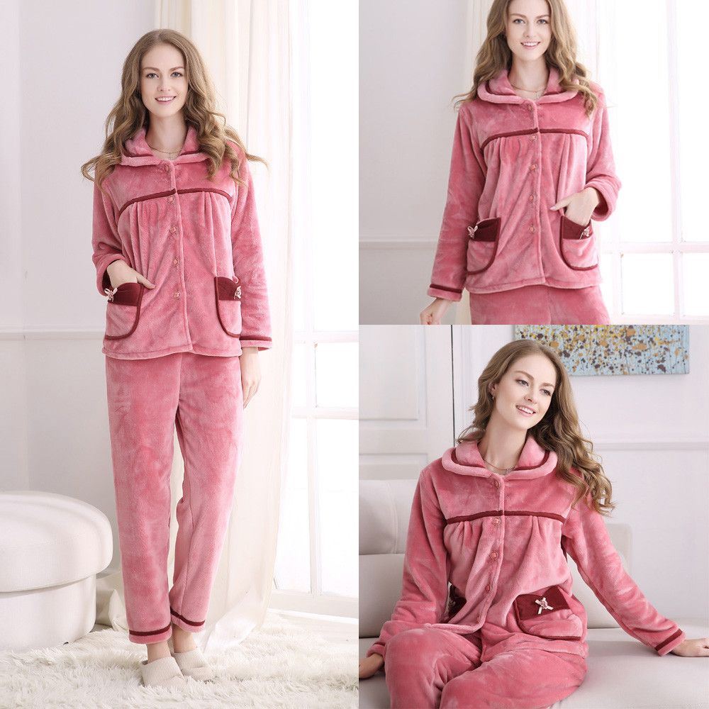 Acheter 2019 Mode Flanelle Epais Pyjamas Rose Femmes Hiver Vetements